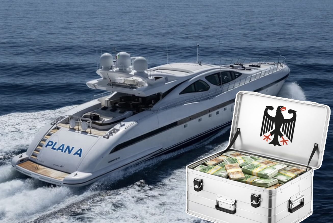 Im Spätsommer 2021 sitzen hier ein paar junge Männer in Shorts und Polos, Ray-Bans auf der Nase und Vintage in den Gläsern. Sie stoßen an auf den Coup ihres Lebens und ordern die frisch gefangenen Langusten aus den lokalen Gewässern. Das Schiff, mit dem sie gekommen sind, ist bei weitem nicht das größte in der Bucht, aber vielleicht das schnellste: eine Man gusta 13, flach wie ein Rennboot, und doch eine Luxusyacht: 40 Meter lang, 170 Tonnen schwer, Marmorbäder, Mahagoni-Möbel und Whirlpool inklusive. Über 7000 PS braucht es, um das schwere Boot auf Geschwindigkeit zu bringen. Mit 30 Knoten sind sie von Ibiza hier rüber gebrettert. Auf dem Heck kann man mit dem Fernglas einen Schriftzug erkennen: „Plan A“ in großen Aluminium-Buchstaben. Auf der Badeplattform liegen Taucherflossen und Water-Scooter, und über allem weht die weiß-rote Flagge von Malta. (1)